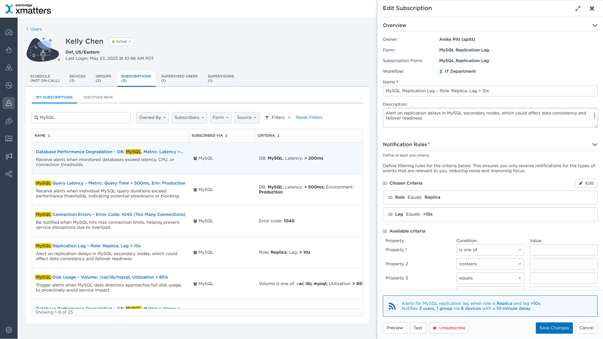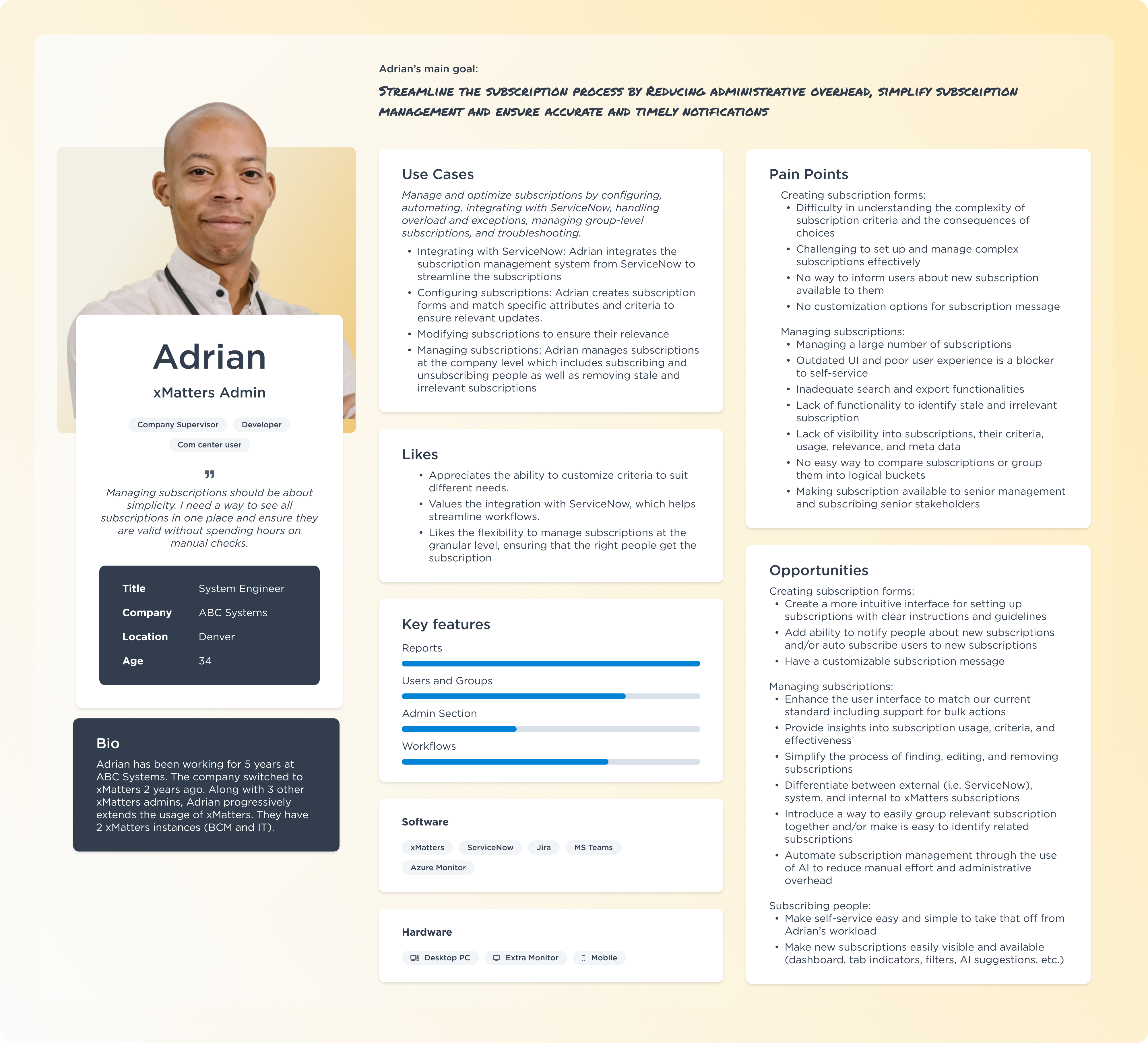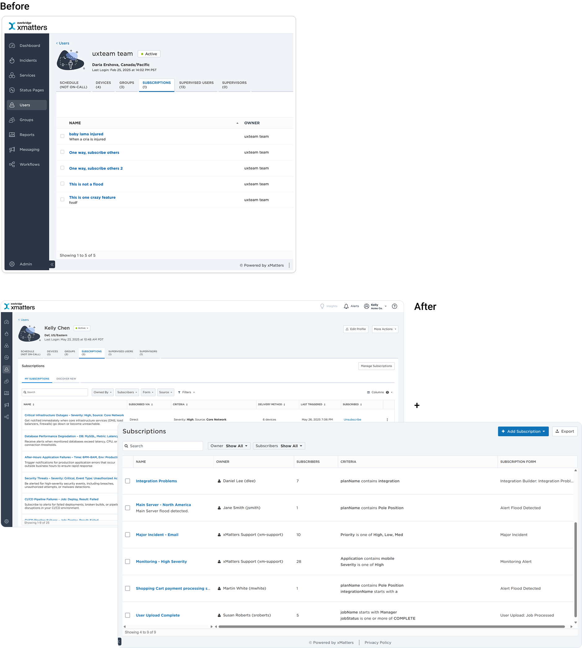 Subscriptions were central to how subscription notifications were delivered across xMatters. But the experience had fragmented over time: