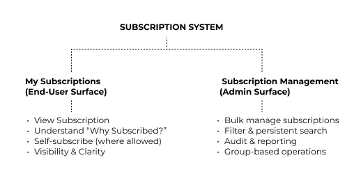 Instead of iterating on a single surface, we introduced a dual-surface model that separated self-service from administrative control