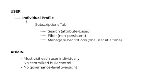 Admins were forced into inefficient workflows.End users lacked transparency.The UI patterns reinforced fragmentation.